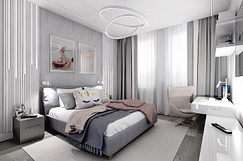 Квартира для семьи из трех человек, площадью 155 кв.м. В этом пространстве нам удалось реализовать общественную зону и приватную, для комфортного ежедневного проживания каждого члена семьи.