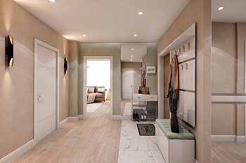 Квартира 93 кв. м проектировалась для семьи с двумя разнополыми детьми. Пространство позволяло рассмотреть разные варианты расположения помещений внутри квартиры. Поэтому этап утверждения планировки длился достаточно долго.